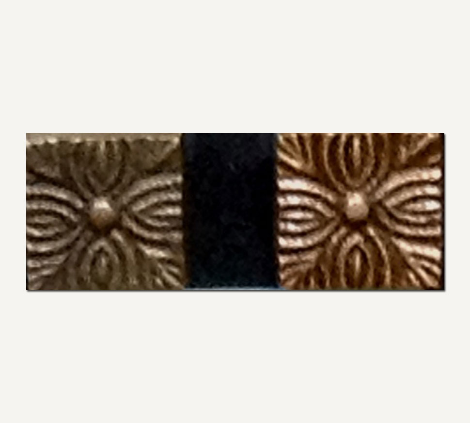Argento metal inserts are hand cast using aluminum / copper / bronze and plated with rustic colors. A variety of classic Roman and Greek designs, geometrical, and old English designs are available. They can be used as highlights between tiles, as borders, inserts and full feature walls.