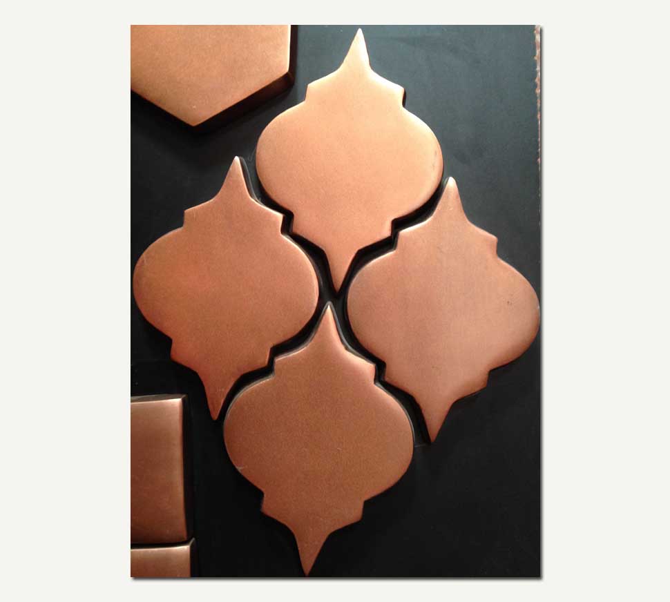 Argento metal inserts are hand cast using aluminum / copper / bronze and plated with rustic colors. A variety of classic Roman and Greek designs, geometrical, and old English designs are available. They can be used as highlights between tiles, as borders, inserts and full feature walls.