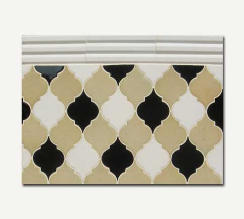 Azul Series Ogee Small Handmade Tile - Black / Ivory / White