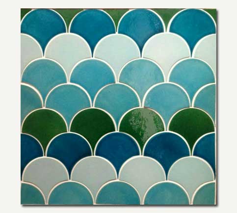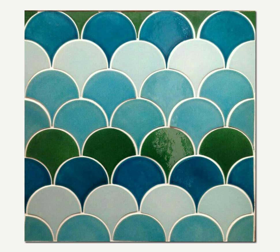 Hand pressed and hand cut into various shapes, the Azul series handmade tile is glazed by hand and fired to create a distinctly hand crafted look