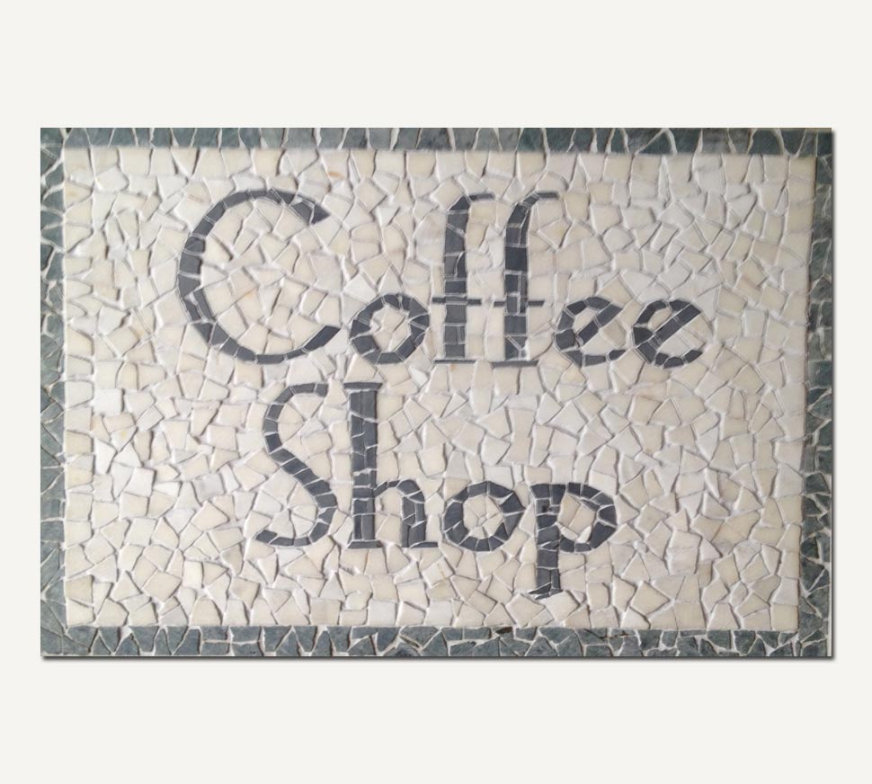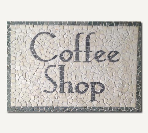 Ceramic China Mosaic Signage Aqua White & Black On Mesh