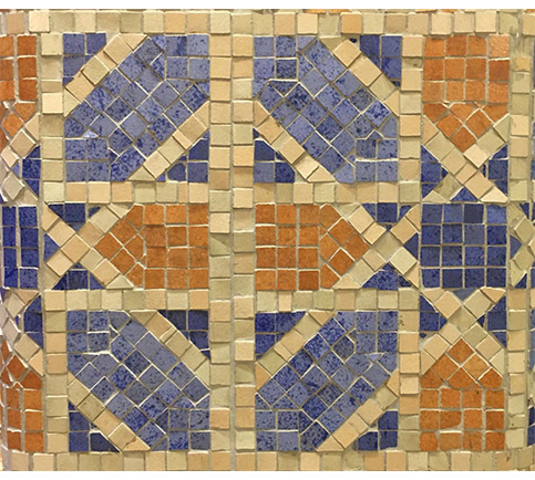 Ornate mosaic borders made with small square ceramic pieces of different colors complement any tile floor