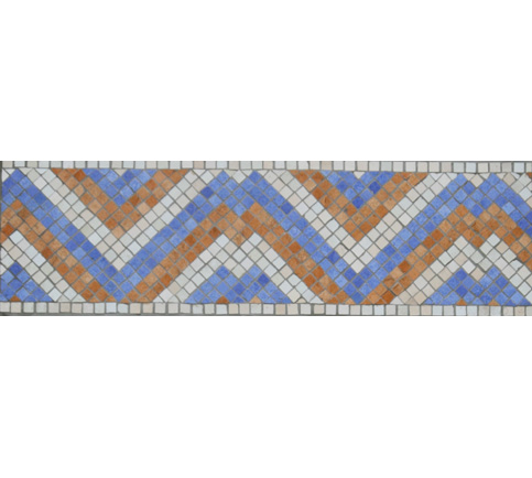 Ornate mosaic borders made with small square ceramic pieces of different colors complement any tile floor