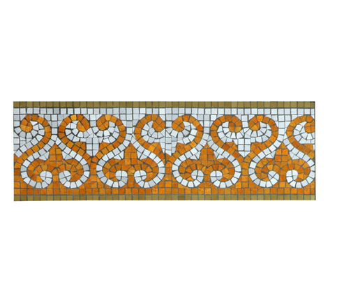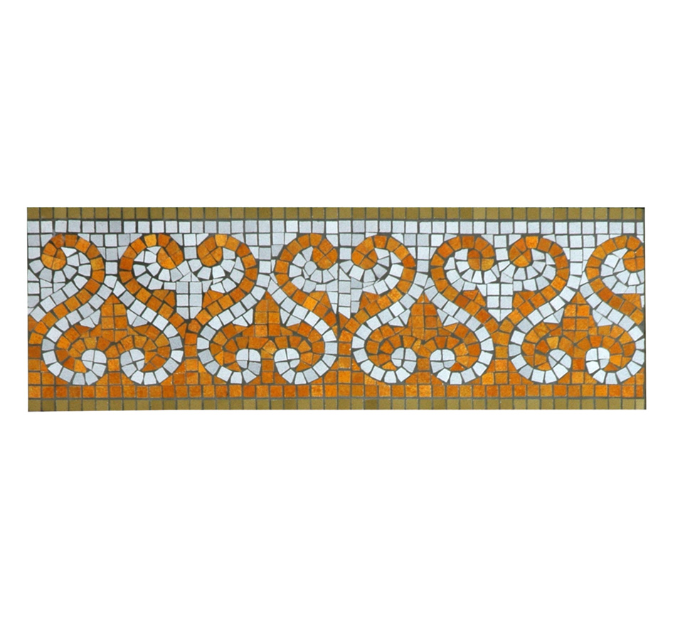 Ornate mosaic borders made with small square ceramic pieces of different colors complement any tile floor
