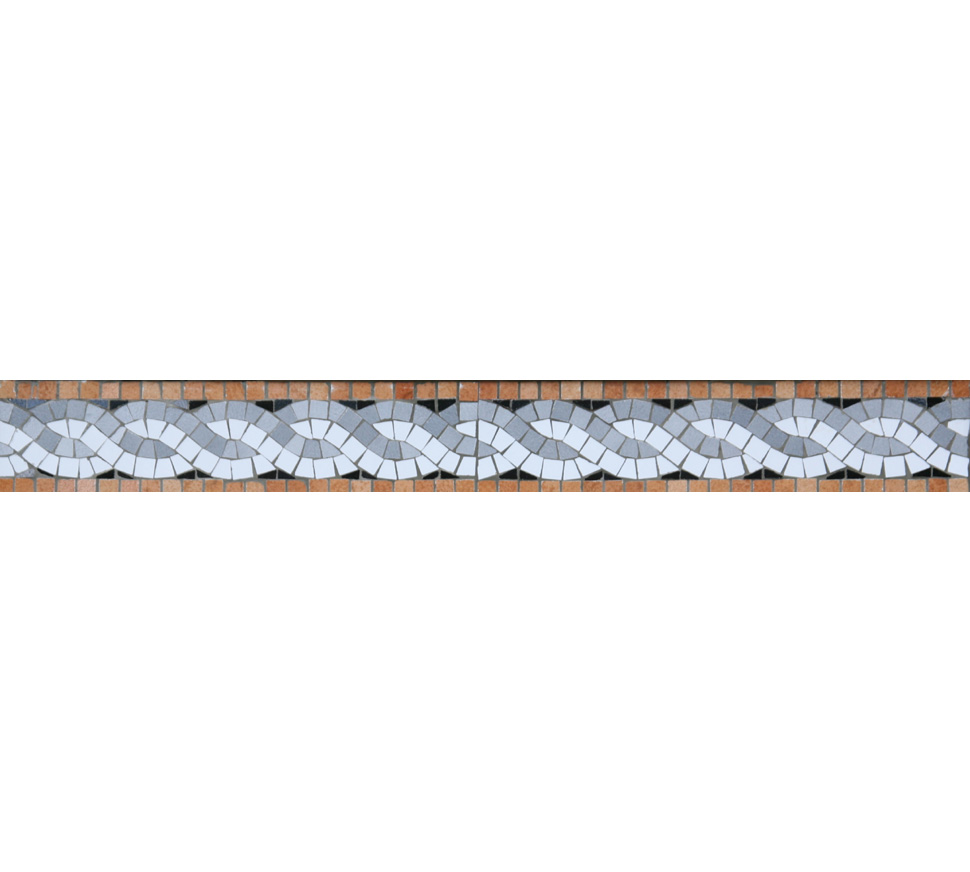 Ornate mosaic borders made with small square ceramic pieces of different colors complement any tile floor