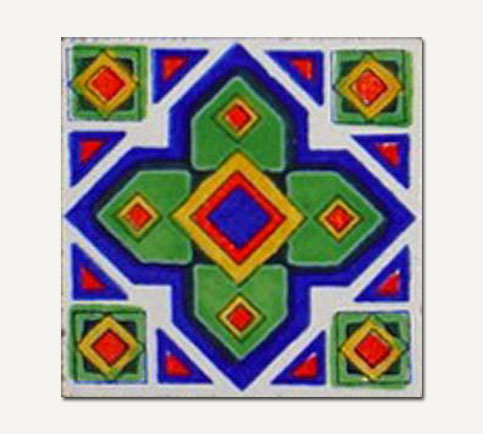 Ferrara inserts are hand decorated with classic Spanish, Portuguese and Moroccan designs. They can be used as highlights between tiles, as borders and also as centerpieces. They are also available with a harder, glossy 'crystal' glaze for use on the floor.