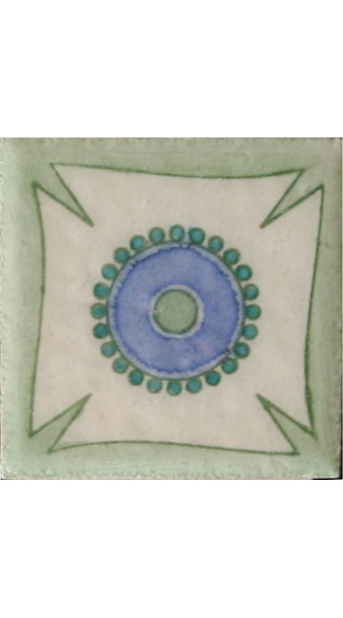 Ferrara inserts are hand decorated with classic Spanish, Portuguese and Moroccan designs. They can be used as highlights between tiles, as borders and also as centerpieces. They are also available with a harder, glossy 'crystal' glaze for use on the floor.